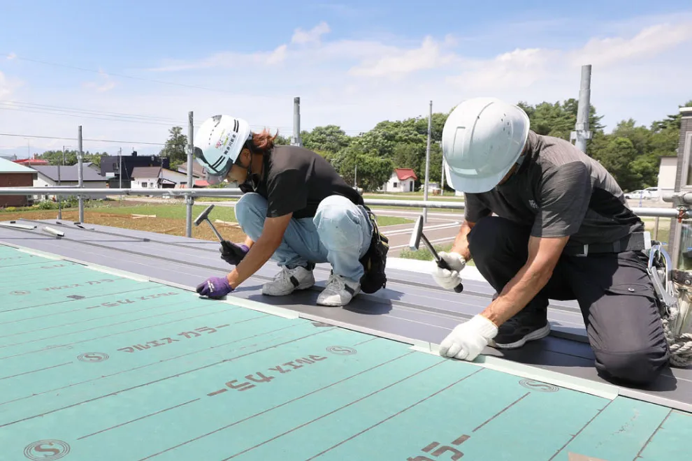 主に十勝管内の建設現場(住宅・倉庫等)にて金属製屋根・外壁の施工を行う仕事です。